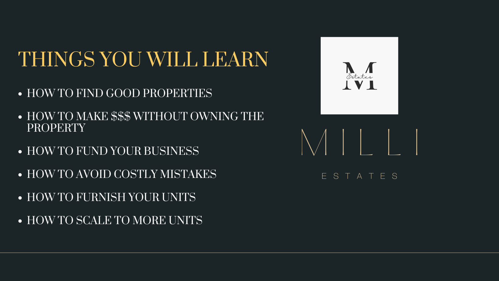 Short-Term Rental Mini Master Class In our master class, we teach you how to start and scale your short-term rental and how to leverage property you don't have to own. Select a pricing option $997.00 2 x $500.00 3 x $334.00 Purchase